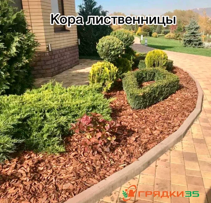Вредных веществ не выделяет, во время разложения, удобряет и подкисляет почву. Порывы ветра для мульчи из коры не страшны, она не разлетается как травяное защитное покрытие. Кора украсит любую территорию – двор, сад, цветник и даже огород.